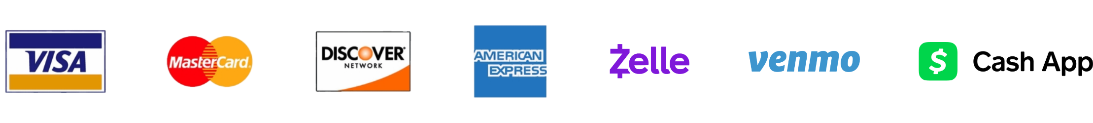 We accept multiple forms of payment for your convenience: Cash, Credit Cards, Zelle, Venmo, CashApp